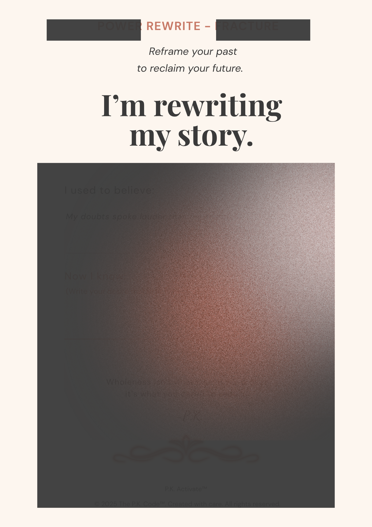 Intellectual Property: The diagnostic, blueprint, and all its contents are proprietary to The P.K. Code™, LLC. They’re designed for your personal growth — not to be copied, shared, or redistributed in whole or in part.